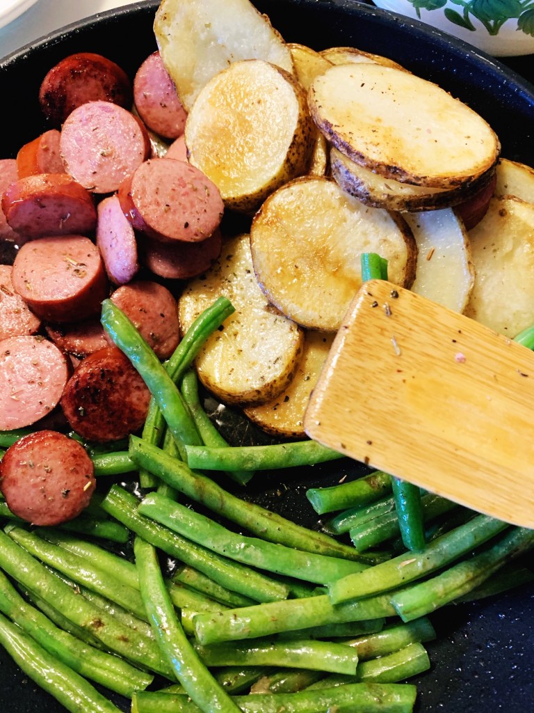 Do you have a one-pan or one-skillet dish that you love? Do you call this smoked sausage or kielbasa? Comment below!