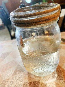 Before you go ahead and start clipping – be sure to determine what you’re doing to put this arrangement in. You’ll need a container of some sort that can hold water. For this tutorial, I’m using a mason jar, but you can also use any other kind of jar, a bottle (think a wine bottle, glass coke bottle, et cet), a vase (doesn’t have to be expensive – it could be picked up at Dollar Tree) or other container. I prefer smaller containers rather than larger wide-mouthed vases. If you use a tapered-open vase (one with the widest part being the open top), you’ll need a lot more filler. I also find that shorter containers, like the mason jar, are nice because your stems don’t have to be super long.