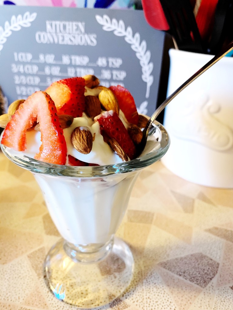 - 1 serving of light Vanilla Greek Yogurt (about ¾-1 cup)