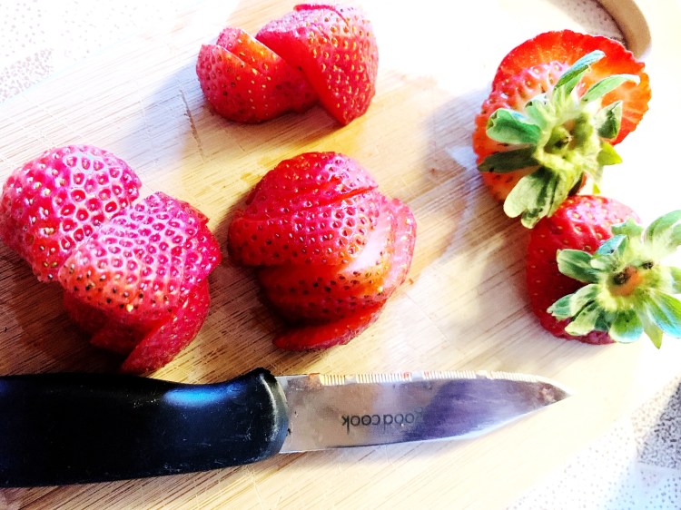 - 3 small or medium-sized strawberries OR 1 medium apple