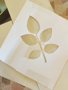 Once that dried, I knew I wanted to stencil something on the block to give it a little extra character. My sister has a Cricut and she printed this cute sprig stencil for me on cardstock. Once the spray paint had dried, I used a sponge brush and some deep tan paint to paint on the stencil design.