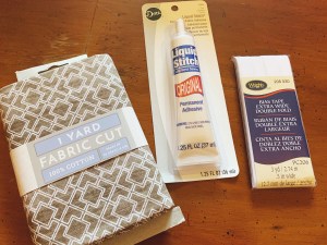 I got all of these items in Walmart’s craft section. You could easily use a fabric fat quarter too, but I preferred getting a yard in case I messed up or to double up on the fabric for thickness.
