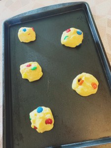 I wanted to try my hand coming up with an M&M cookie recipe using cake batter as its main ingredient.