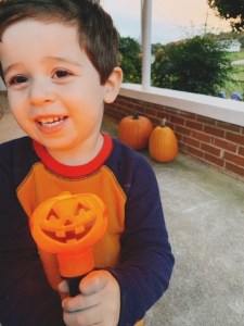 The pumpkin light was the real winner. He kept saying “this is Halloween” and waving it around proudly. It even had to serve as a nightlight that evening in his room.