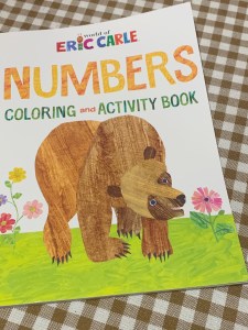 After I found all of these goodies at Target, I realized I hadn’t gotten tissue paper! There’s a Dollar Tree just down the road from my most local Target, so I ran in there. I grabbed two kinds of tissue paper – traditional red and a shinier red – and then I peeked through the kid’s section, too. I found this amazing Eric Carle coloring book that I couldn’t resist adding to the gift bag! It features the bear from Brown Bear, Brown Bear, What Do You See? which is one of our favorite books, so I know my little one will be so excited to open it, and it’s all about numbers, so it’s a learning activity, too.