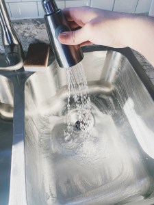 #4: Still using your sponge, be sure to collect some of the sudsy baking soda and wipe down the inside walls of the sink, too. You don’t realize how much splatter gets on the walls of the sink until you’re comparing it to a clean sink bottom!