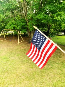 Another thing I bought at Lowe’s was an American flag for under two dollars. These are out because of the upcoming holiday, but we also do have a larger flag on the front of our house, so I thought it was a nice tie in to the rest of the outdoor space. We also bought two more flags to stick in my flower boxes out front for the holiday because, at that price, you could definitely afford to be a little extra patriotic for Independence Day!