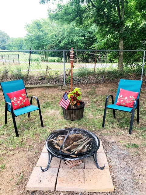 So as we are spending more and more time outside, and as the days are at their longest point right now, I really wanted us to have a backyard that felt comfortable and inviting. Our one day dream is to have a crushed gravel fire pit, lined with landscaping timbers, and complete with a picnic area and the fire pit area. However, we want to be budget conscious now as we continue to work on various aspects of the house including inside and front of the house.