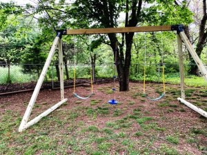 So in May, leading up to Little Man’s birthday, my parents and Jake and I went in together to build a swingset. It’s important that you know that we added this because it ends up being in a corner of this little refreshed area of the yard. Check out our finished swingset below. In the future we hope to add other play equipment is my little one gets older.