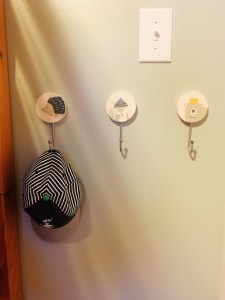 Jake helped me put up these new hooks – they have woodland animals wearing hats and accessories! They are too cute! A friend sent me a picture of these at a new local shop in Dandridge, Tennessee, because she knew that my son’s room matched the theme. I love these so much – and shopping local is so important to me. The brand is Primitives by Kathy, and I love a lot of their other stuff, too.