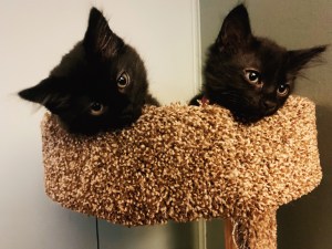 I definitely had time to back out of it. I actually reached out to Kaiti to make sure she still had them when they were closer to the date she said they’d be weaned, so I was obviously about this pet adoption. She still had both kittens. So we went to get one – but then I couldn’t stand the thought of breaking up the siblings, so we brought both home.