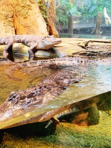 Jake also LOVES alligators and crocodiles, so getting to see them at the aquarium was a highlight for him – and they were SO active! They were sliding off of the rocks and swimming right up to where we were.