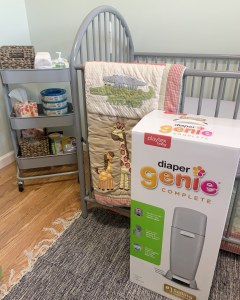 For now, here’s a photo I’ve already shared on Instagram of our nursery thus far – and, by the way, I got a great deal on that Diaper Genie – you can check out this social media post for the details.