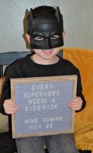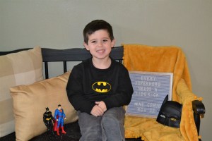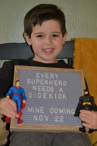 Our simple announcement was so easy and still so fun. We found out on Ash Wednesday morning, and we kept the secret for a little while. We told AJ that I wanted a photoshoot of him with his DC superheroes, and he was all about it. I prepared our letter board with a cutesy superhero message, and found myself grateful that, while he can identify several capital letters, AJ can’t read yet!
