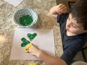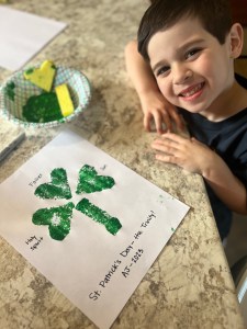 If you know anything about me, you know I love a good DIY or craft, and it’s made all the better if I get to do it with my son, AJ. AJ and I did two crafty art projects for St. Patrick’s Day this year, and I got the bonus of doing one project with my four-month-old, Teddy.