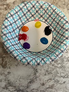 This project requires paint in a variety of colors, your sketched rainbow on a piece of paper, and Q-tips.