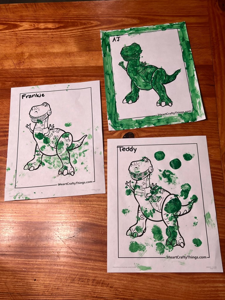I had a sweet artsy afternoon with my littles today. These Toy Story loving boys enjoyed painting Rex at the kitchen table together.