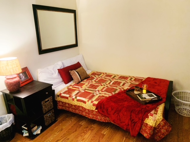 I continued to use the futon as a guest bed. I have the most beautiful handmade quilt from a sweet church friend that I decided to use as bedding.