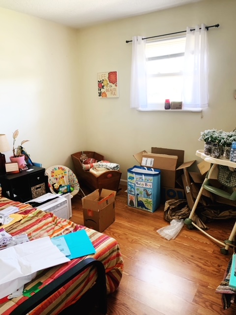 Oh! As a side note – I didn’t get rid of all the things I was storing. In fact, several of the items I plan to sell online actually fit under the futon. Also, I used the dresser to store the gifts and the baby shower decorations. This means I have organized them, have easy access to them, and they’re blocked from view. Total win in my book!