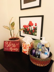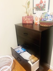 A laundry basket – they may need a space to store their dirty clothing items until they repack as their visit comes to a close. Mine is a spare one I have from Dollar Tree, so it doesn’t have to be expensive or fancy, as long as it serves the purpose well and is clean.